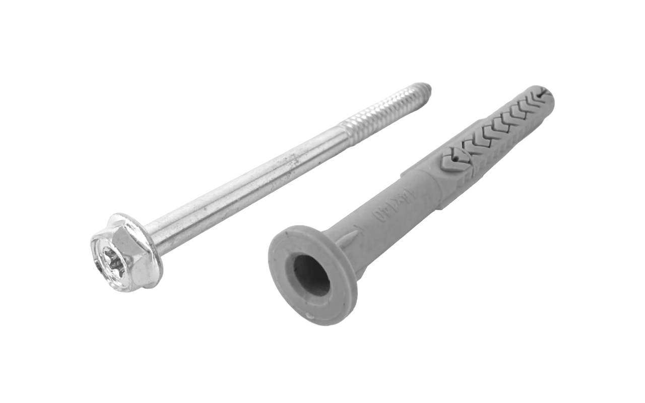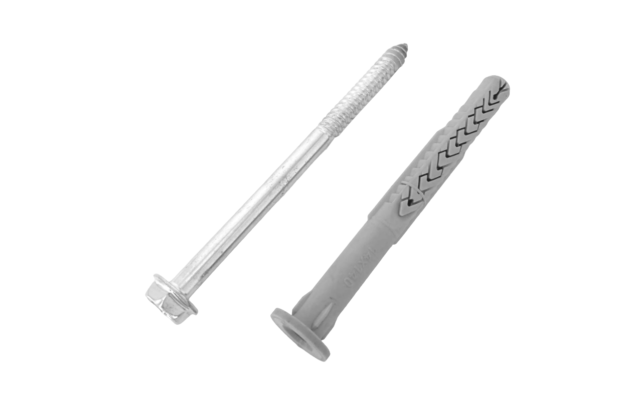 Этот крепёжный комплект предназначен для работы с профилем Т100. Он обеспечивает надёжное и прочное соединение. Размер дюбеля — 14х140 мм. Оцинкованное покрытие защищает крепёж от коррозии, что обеспечивает долгий срок службы.