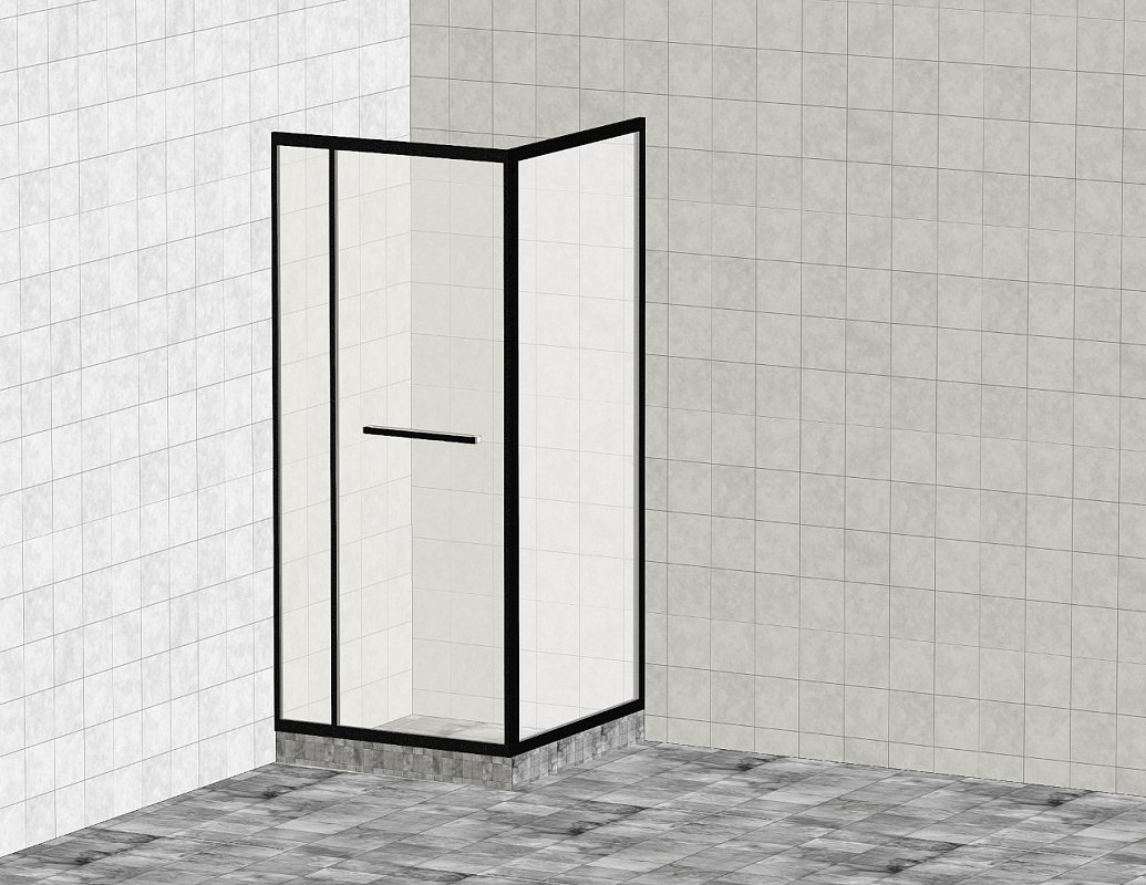 Комплект душевой с внутренней подвижной дверью,толщина стекла 8мм, 900х900х2000, AUSI 304, черная t470 Bl