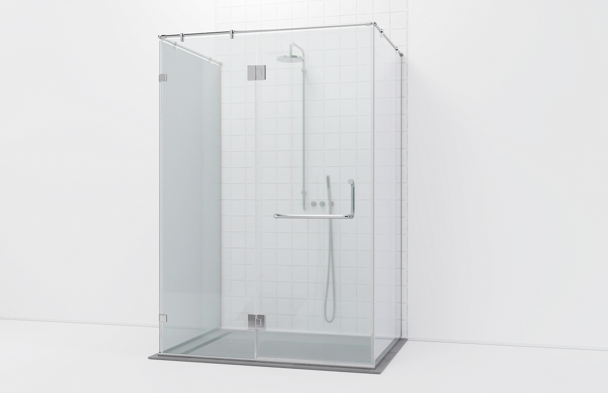 Комплект душевой перегородки возле стены с дверью и глухими стеклами.