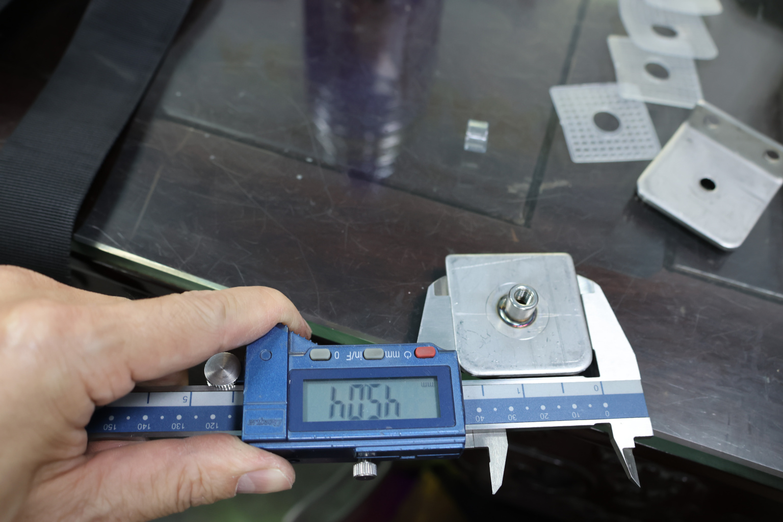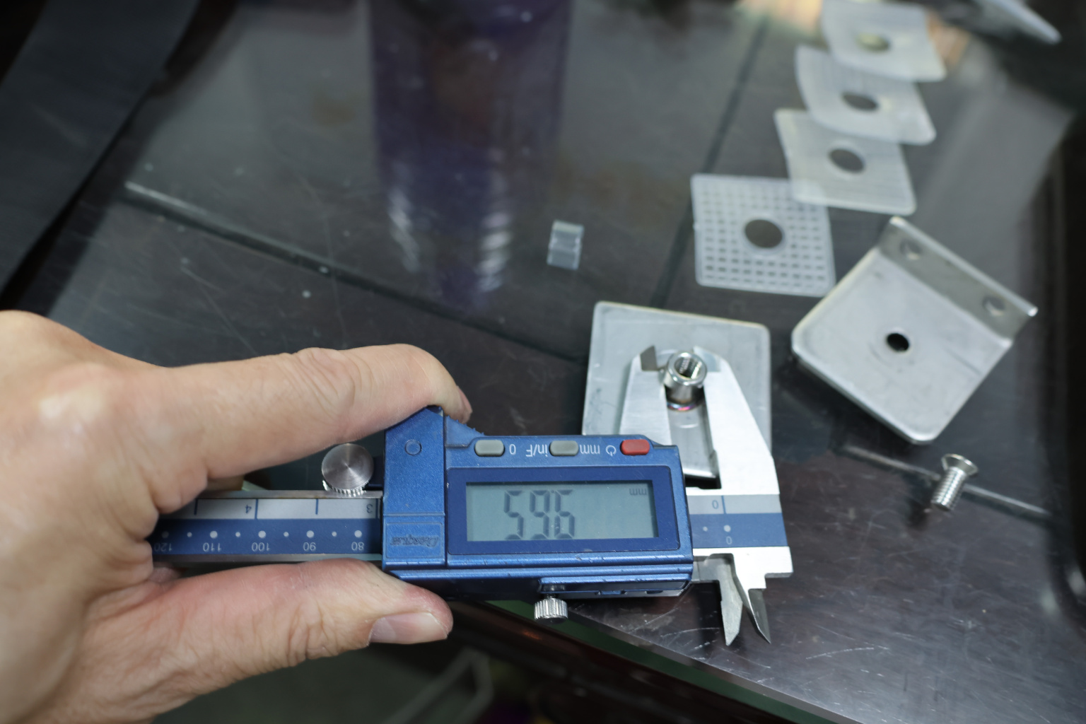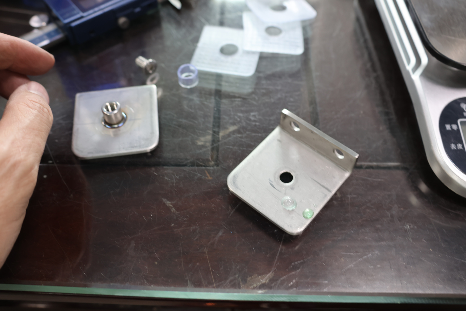Коннектор разбирается на две половинки, Г-образной стороной крепится к стене на саморезы. Затем к нему прикладывается стекло с заранее заготовленным вырезом согласно чертежу, а далее второй половинкой стекло зажимается.