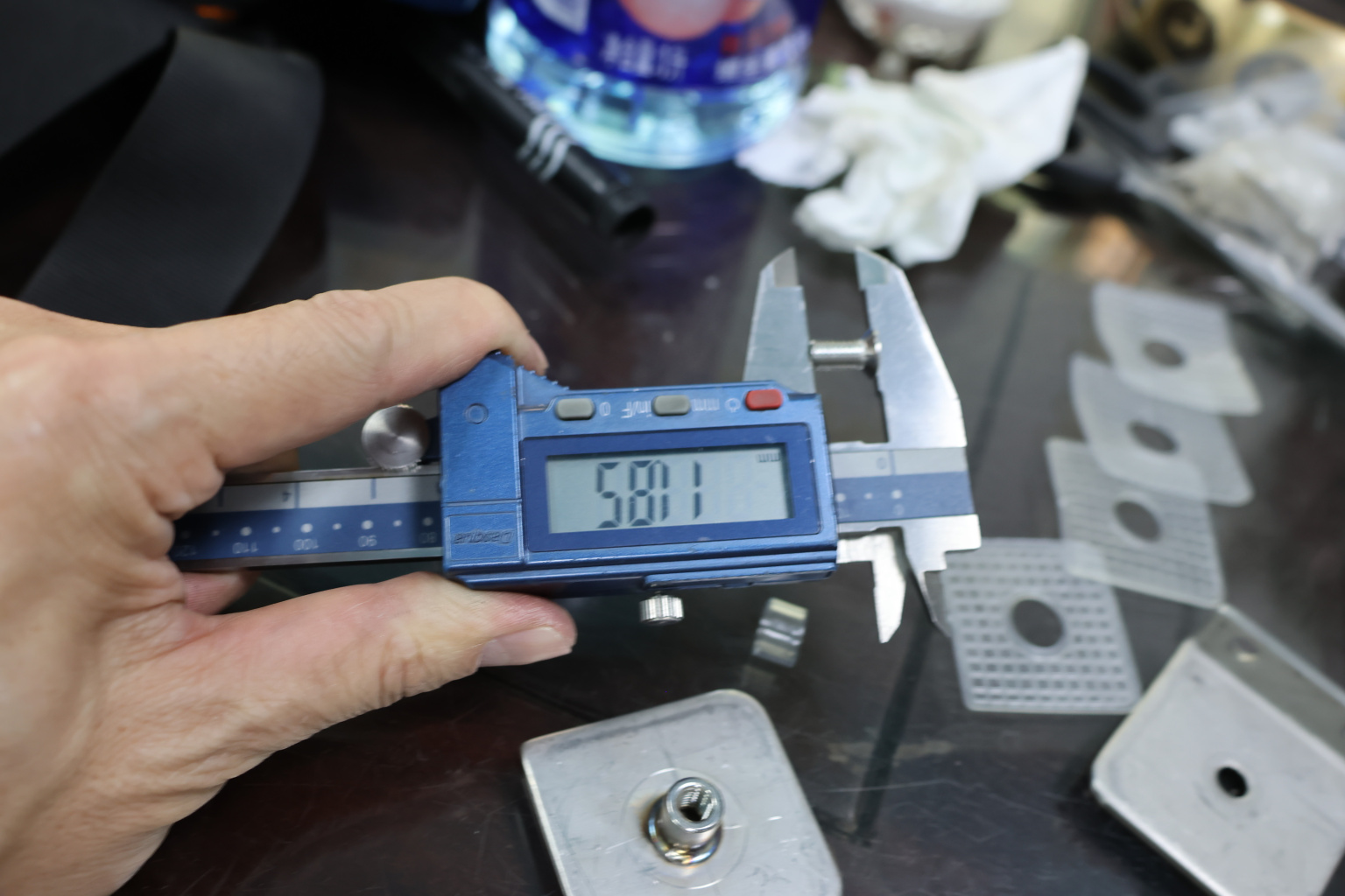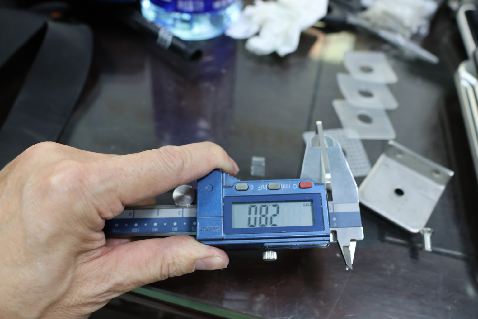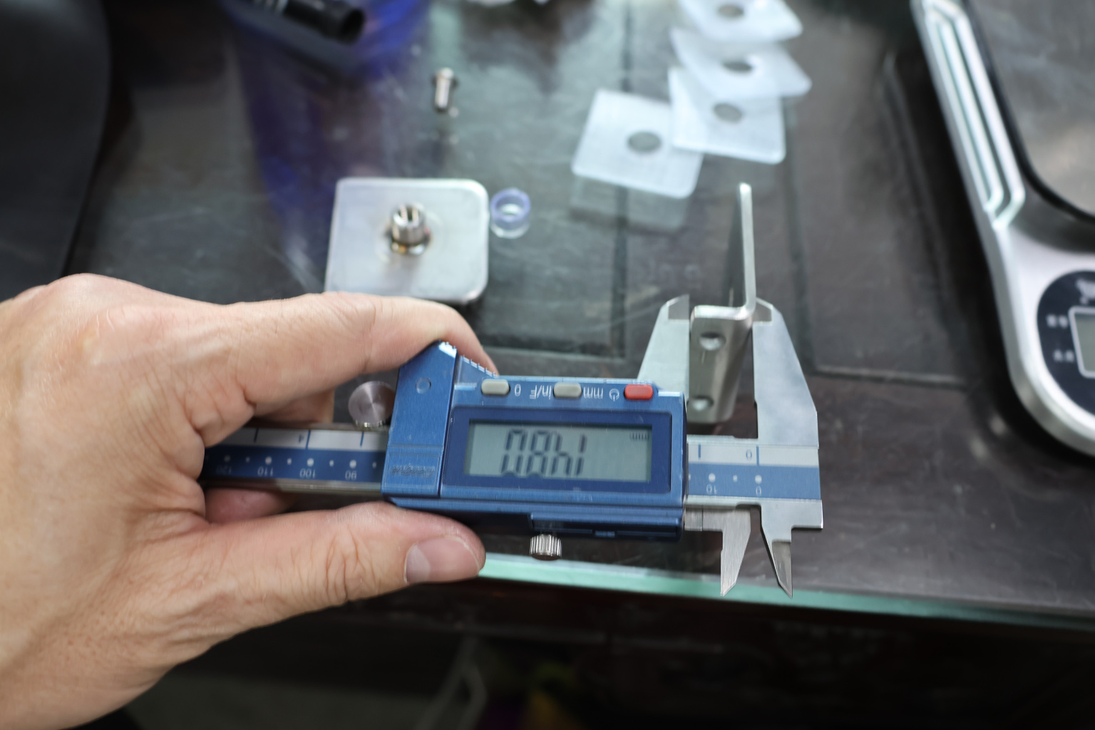 Коннектор разбирается на две половинки, Г-образной стороной крепится к стене на саморезы. Затем к нему прикладывается стекло с заранее заготовленным вырезом согласно чертежу, а далее второй половинкой стекло зажимается.