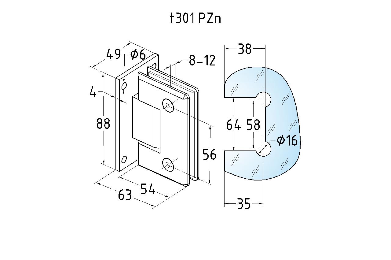 Петля для душевой кабины стена-стекло 90° 90х55 мм цинк, полированная t301 PZn