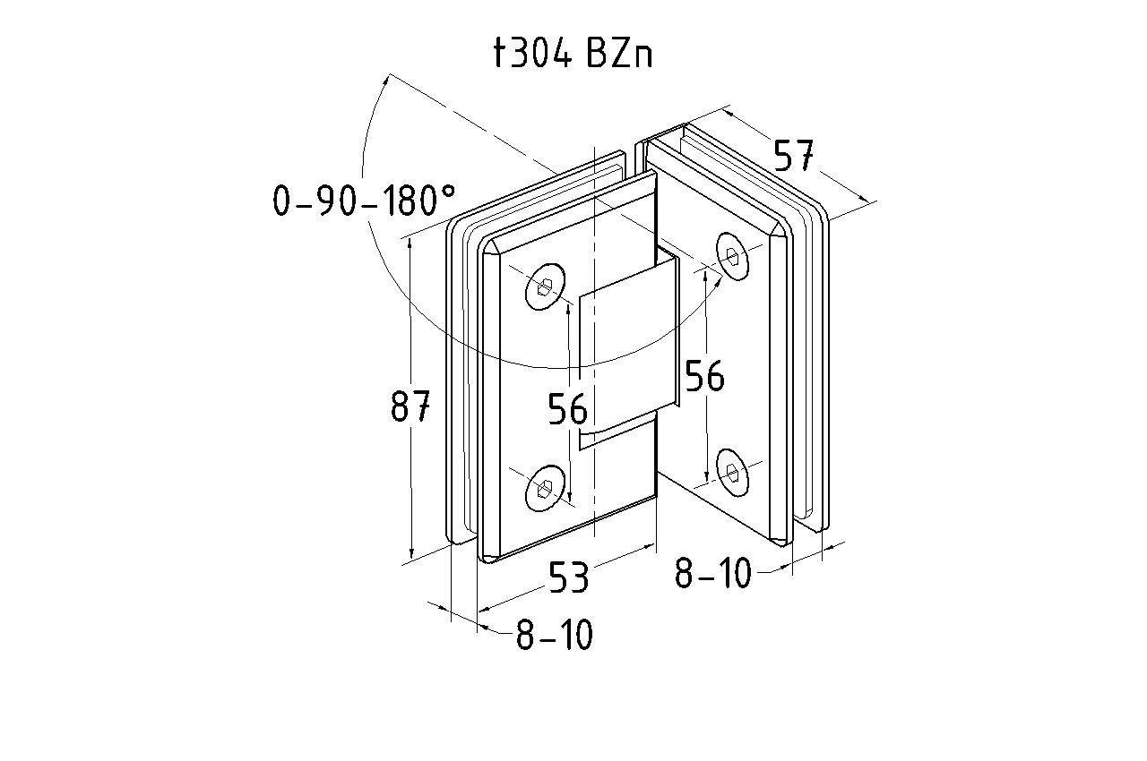 Петля для душевой стекло-стекло 90х55 мм, 90°, цинк, черный t304 BZn