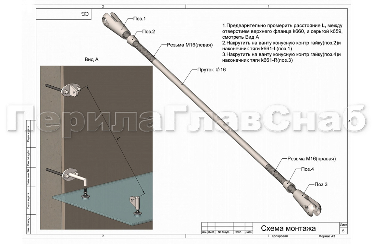 k668-16-L3 Вант (тяга) для козырька М16, 2000-3000мм (AISI 304)