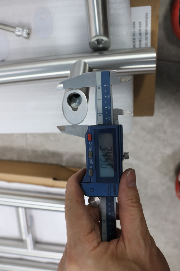 у основания ручки откручиваем с помощью шестигранника винты, делим ручку на две части, в заранее заготовленные отверстия вырезы в стекле 10-12 мм фиксируем первую часть ручки в отверстиях и с обратной стороны ответную часть затягиваем с помощью шестигранника
