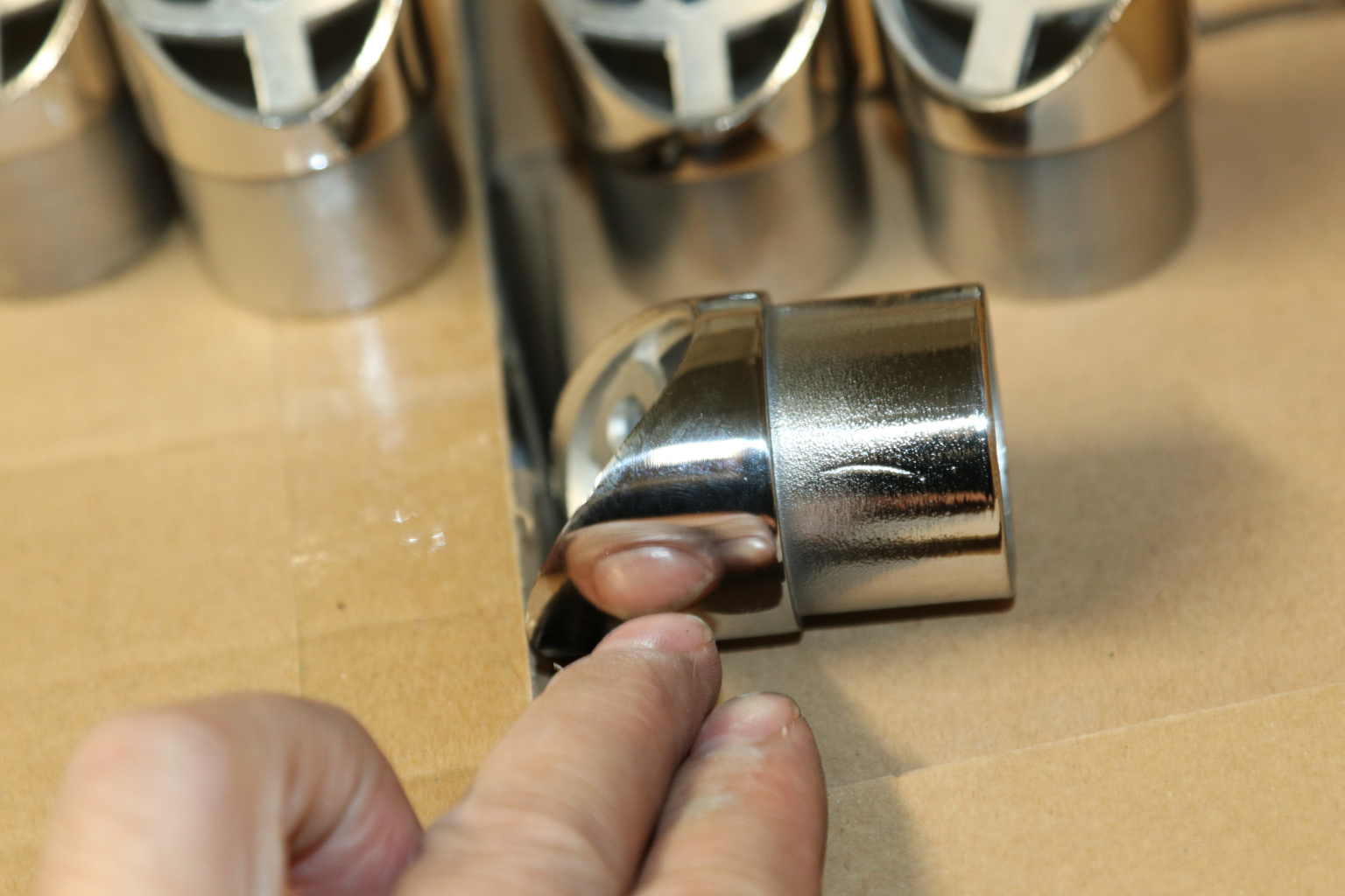 Наконечник седловина косая 30° на стойку Ø38.1 мм, под поручень Ø50.8 мм, литая, полированная, AISI 304, k045-1