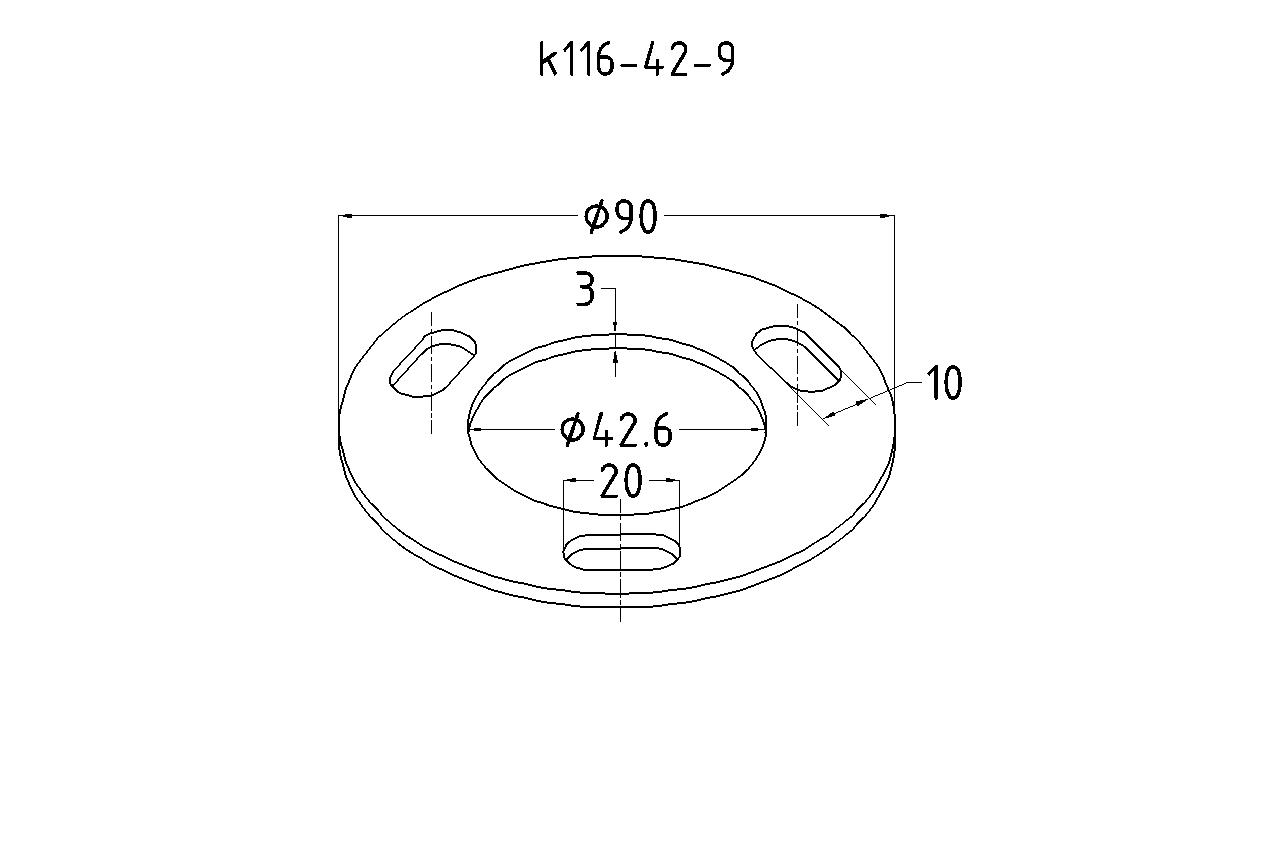 Фланец стойки 42/90 х 3 мм #200 3 отв х М10 х 20 черный металл k116-42-9