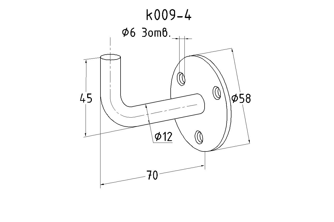 Кронштейн для перил к стене без ложемента, Ø60х3 мм k009-4