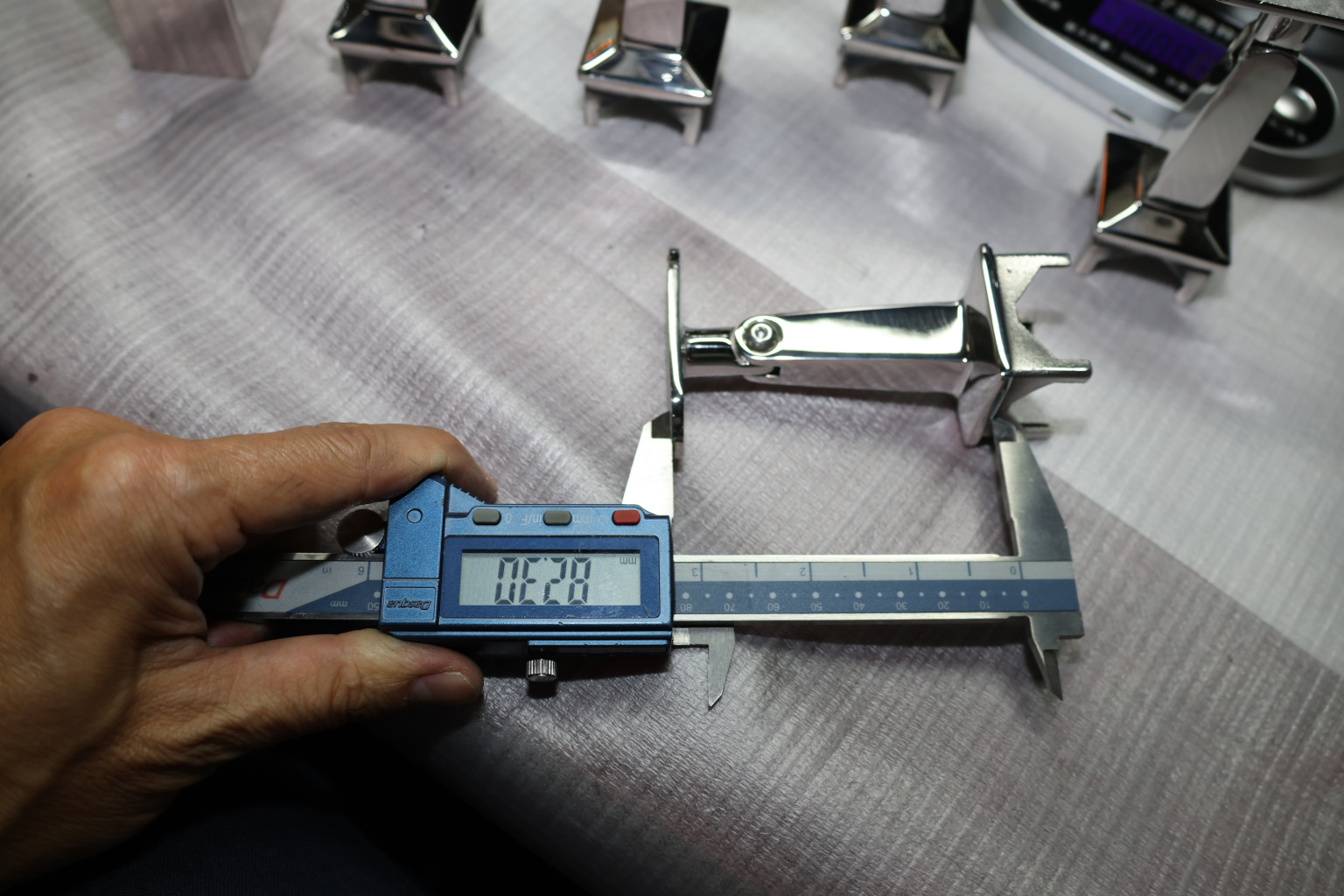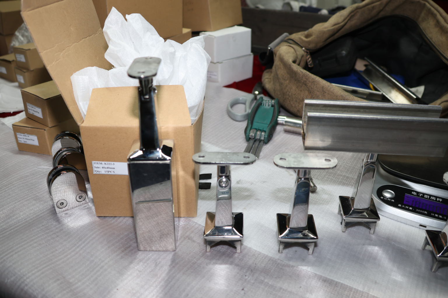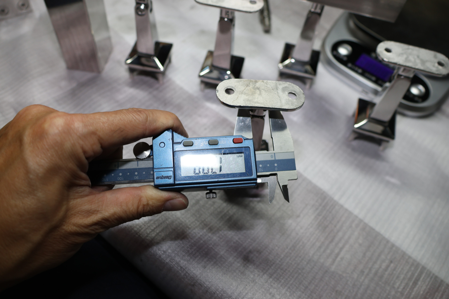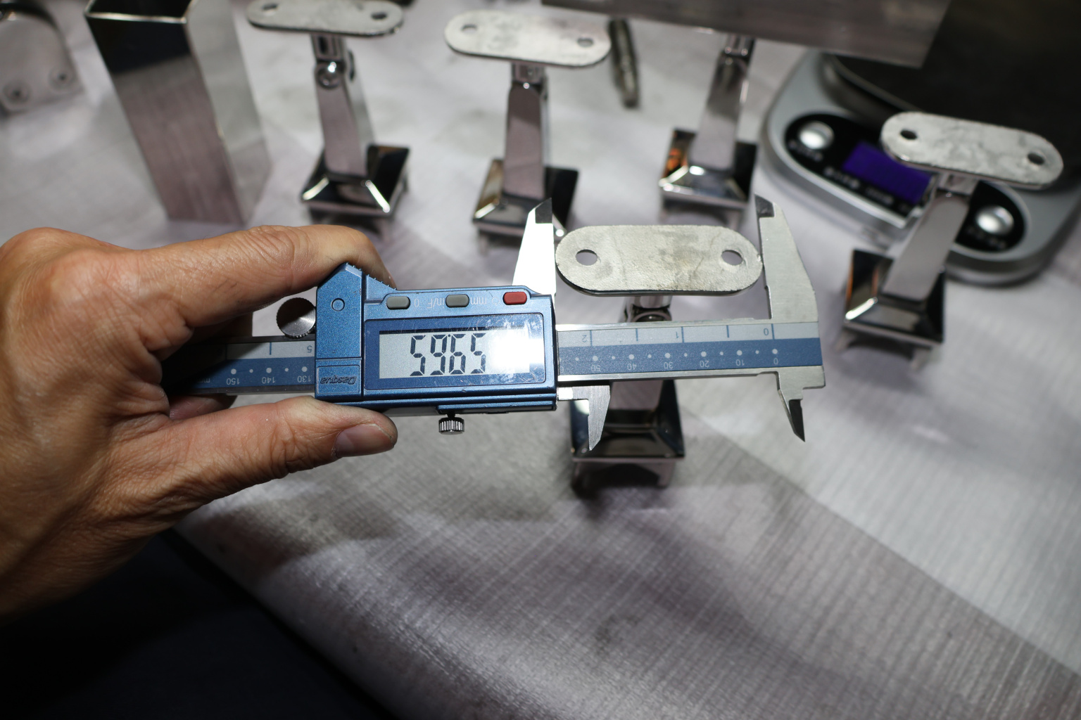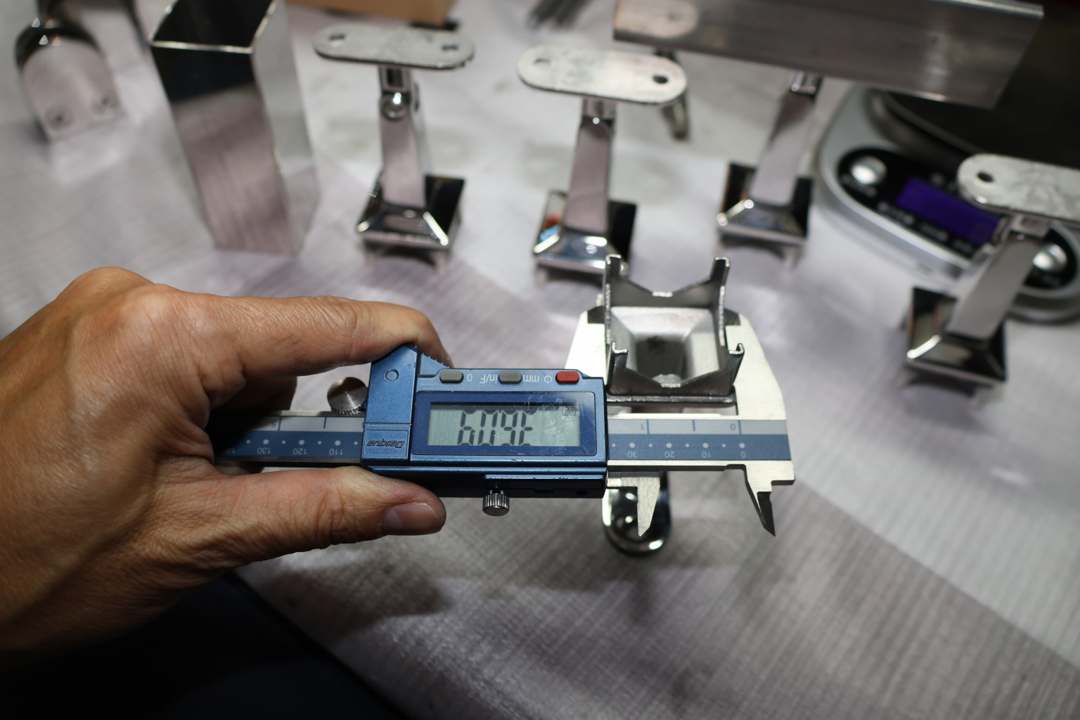 Наконечник на стойку из профильной трубы 40х40 мм, с регулируемым ложементом под плоскость, литой, полированный, нержавеющий AISI 304 k222-3