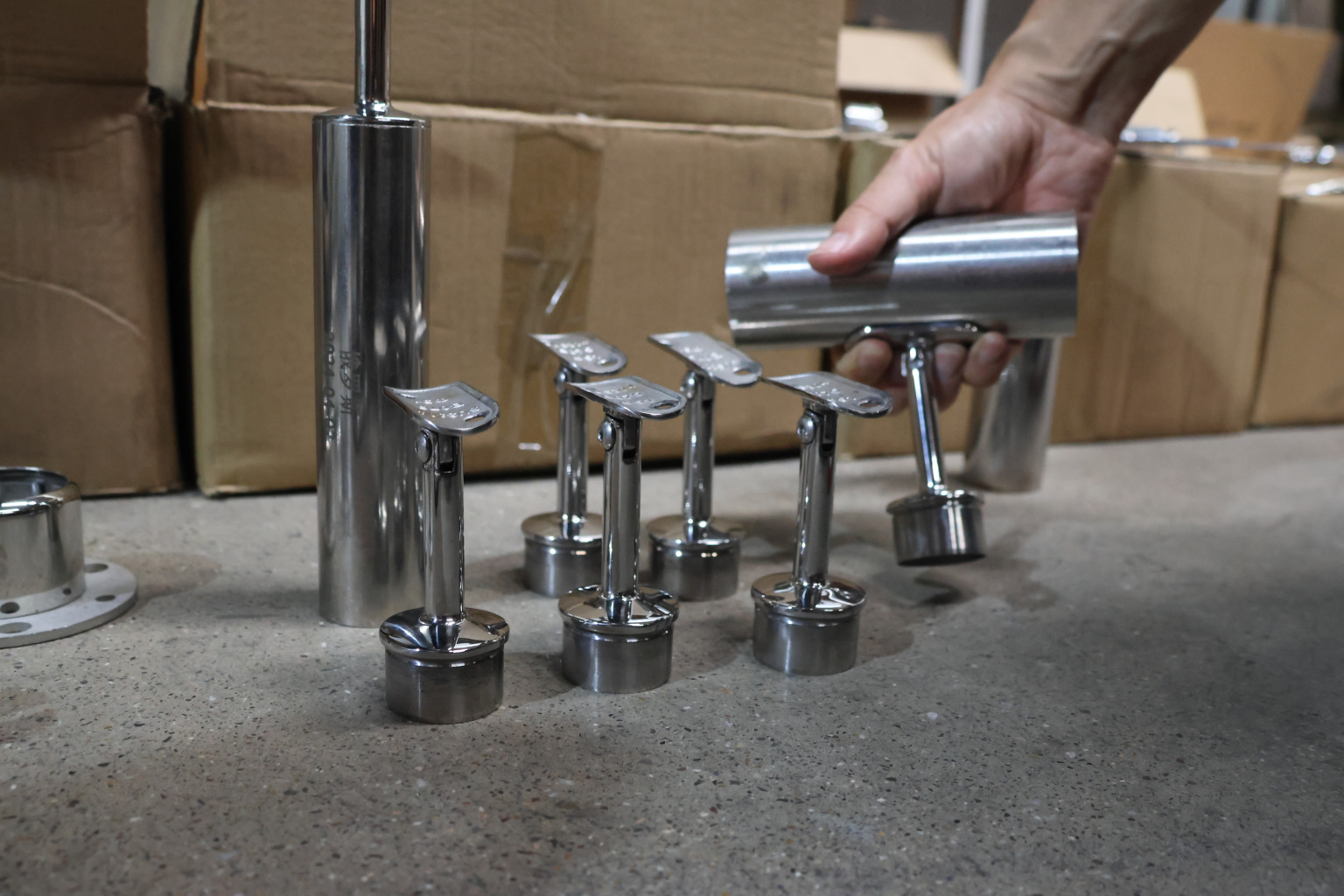 Наконечник палец с регулируемым ложементом под поручень Ø38.1-42.4 мм, на стойку Ø38.1х1.5 мм, литой, полированный, нержавеющий (AISI 304) k006-7