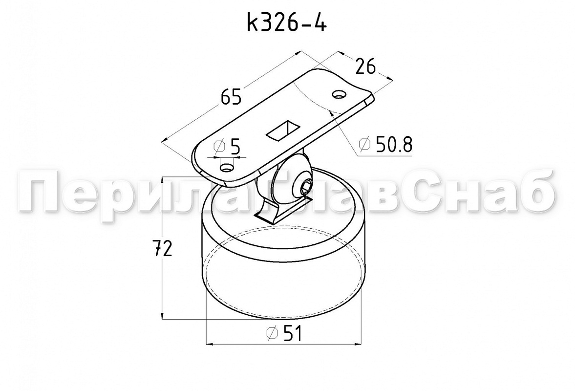 Предназначен для соединения поручня Ø50.8 мм со стойкой Ø50.8 мм. Деталь с регулируемым ложементом, что позволяет монтировать её как и на горизонтальных площадках, так на лестничных маршах.