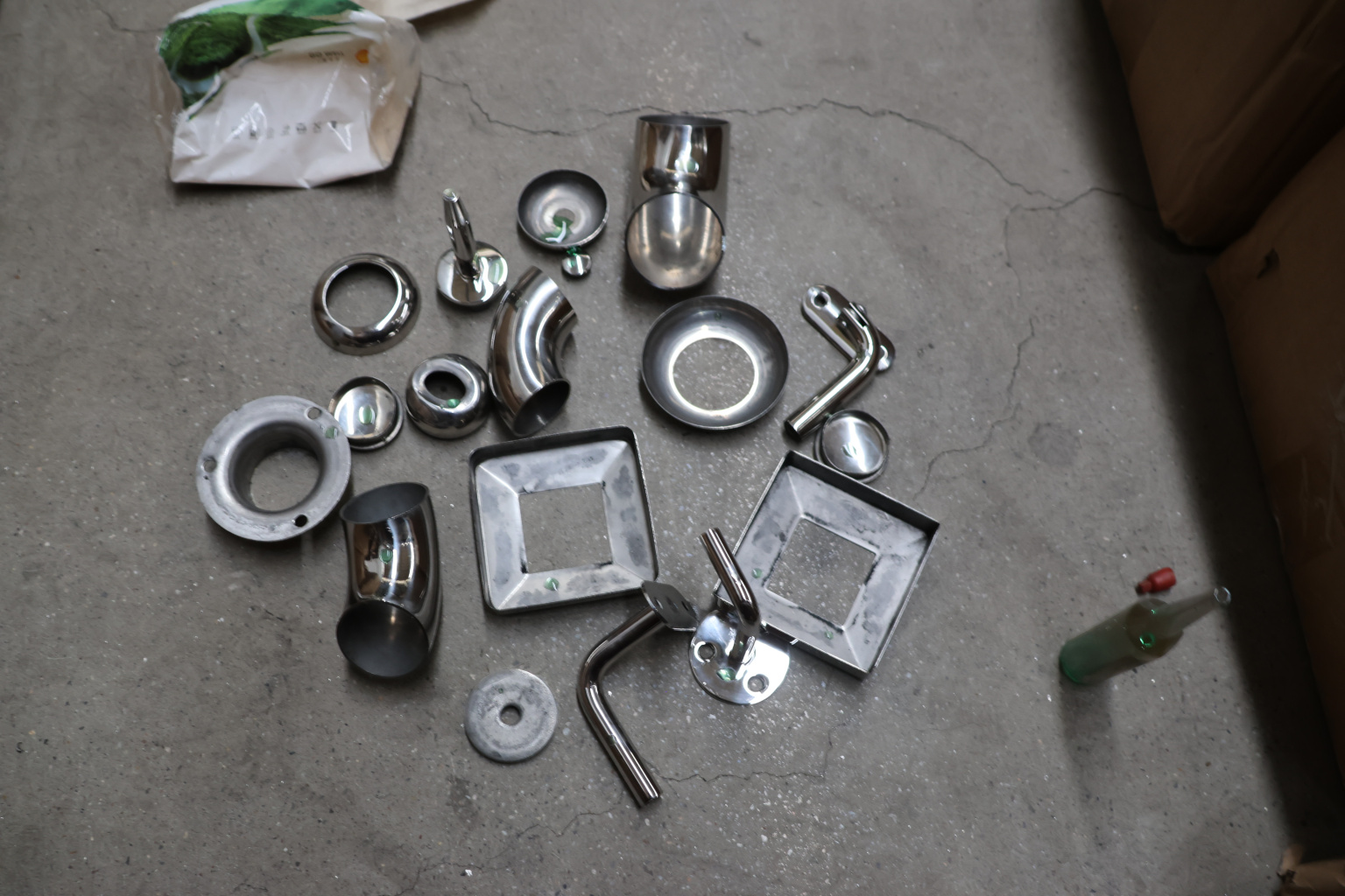 Наконечник штампованный (СПС) прямой 90° на трубу Ø16 мм, для поручня диаметром Ø38.1-50.8 мм. Деталь полированная 400Grit, нержавеющая, марка стали - AISI 304