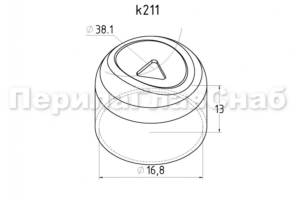 k211-3 наконечник стойки штампованный, прямой, Ø16 мм, для поручня Ø38.1 мм, полированный (aisi 201). Наконечник штампованный под 30°, на стойку Ø16 мм, для поручня Ø38.1 мм