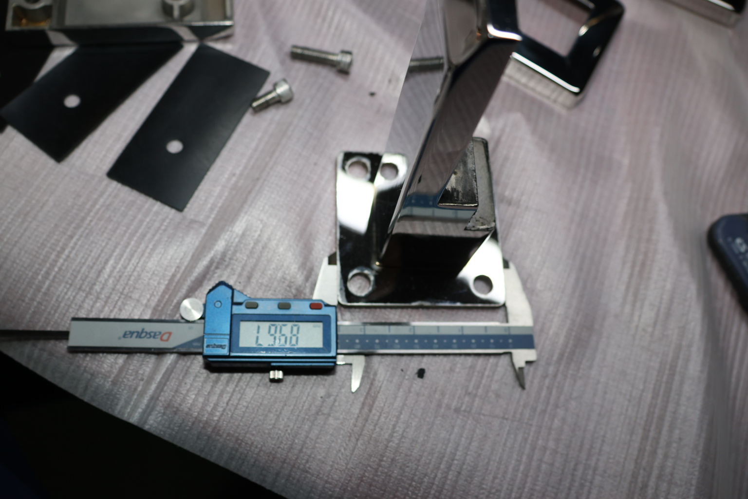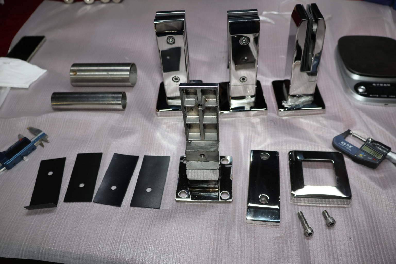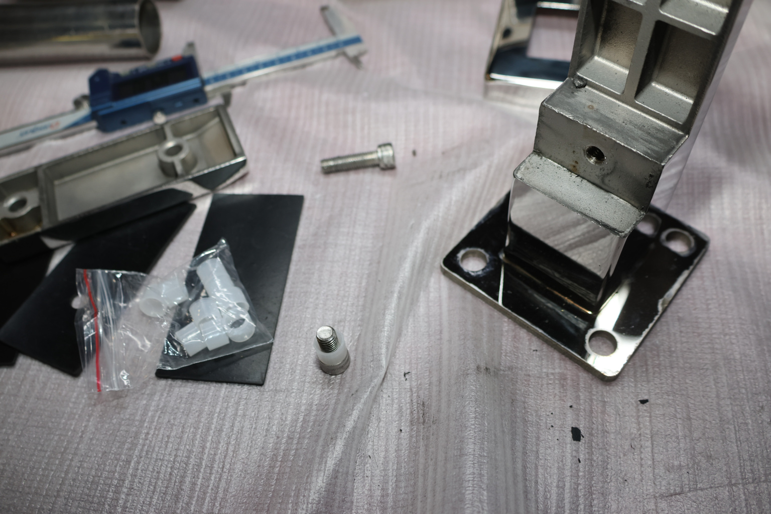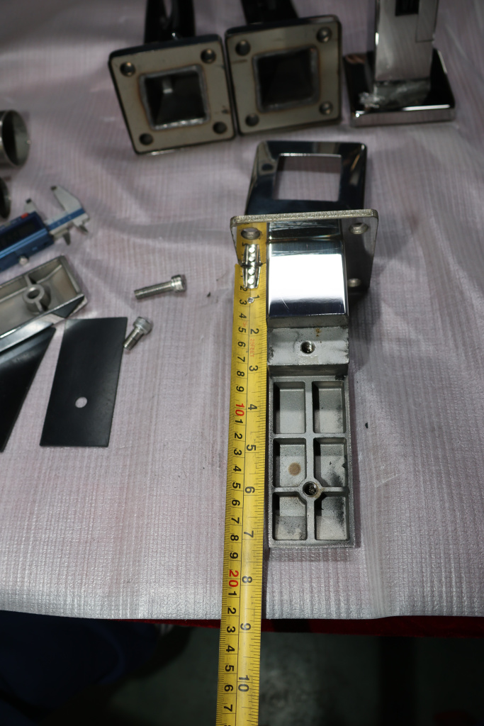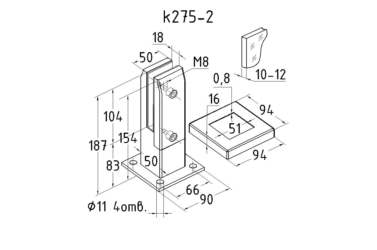 Стеклодержатель литой напольный, плоский 50х50х190 мм, для стекла 10-12 мм, полированный. Марка стали - AISI 304. Вам понадобиться для крепежа потайной винт под шестигранник k601-19-120. Необходимо отверстие в стекле- 16 мм.