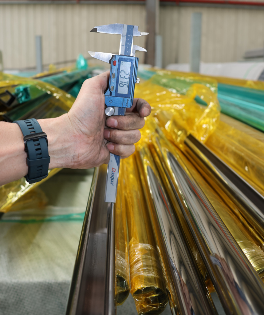 Труба Ø42.4 мм, с пазом 24х24, тройная полировка 800GRIT, (AISI 201) k820