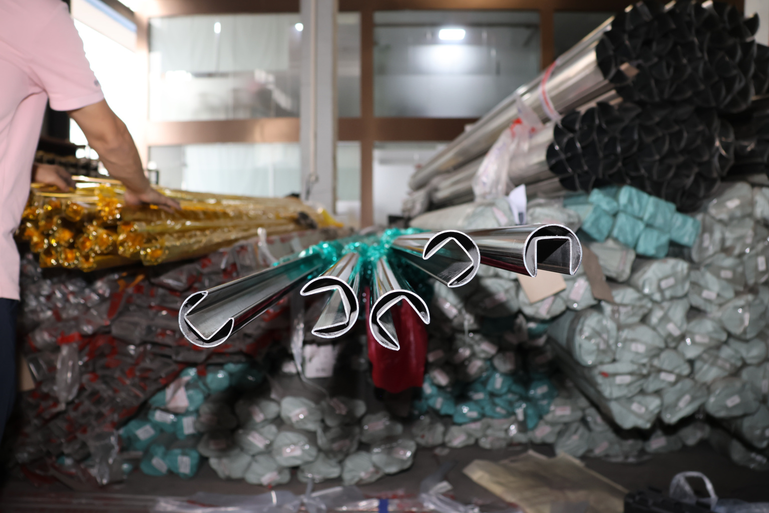 Труба Ø42.4 мм, с пазом 24х24, тройная полировка 800GRIT, (AISI 201) k820