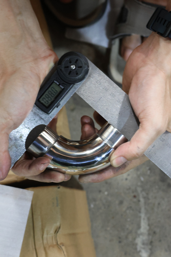 Отвод под поручень диаметром Ø38.1х1.5 мм, 90°. Деталь литая, полированная 600Grit, со вставками. Марка стали - AISI 201
