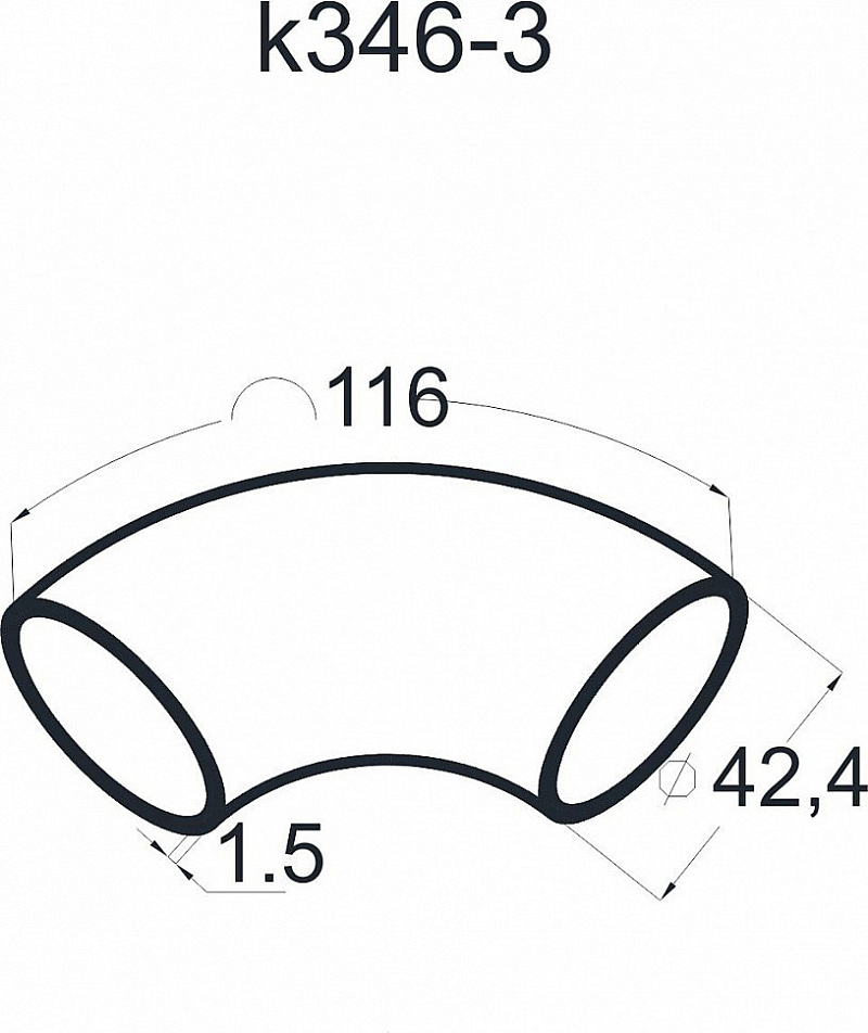 Отвод поручня под сварку Ø42.4 мм, 90°, полированный, (AISI 201) k346-3