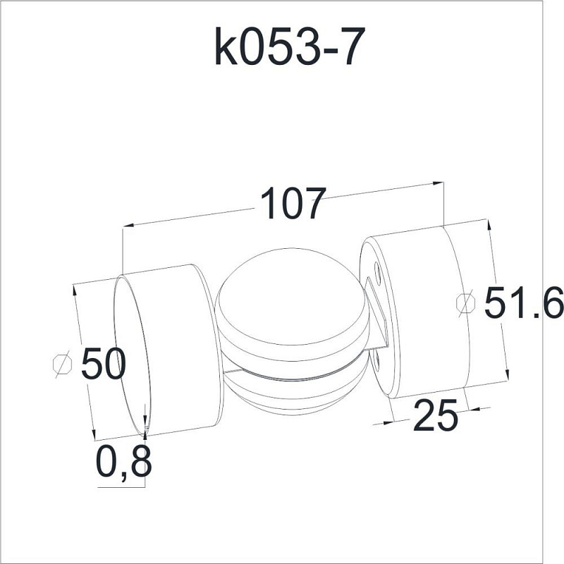 Поворот поручня, шаровый под Ø50.8х0.8 мм, полированный AISI 201 k053-7