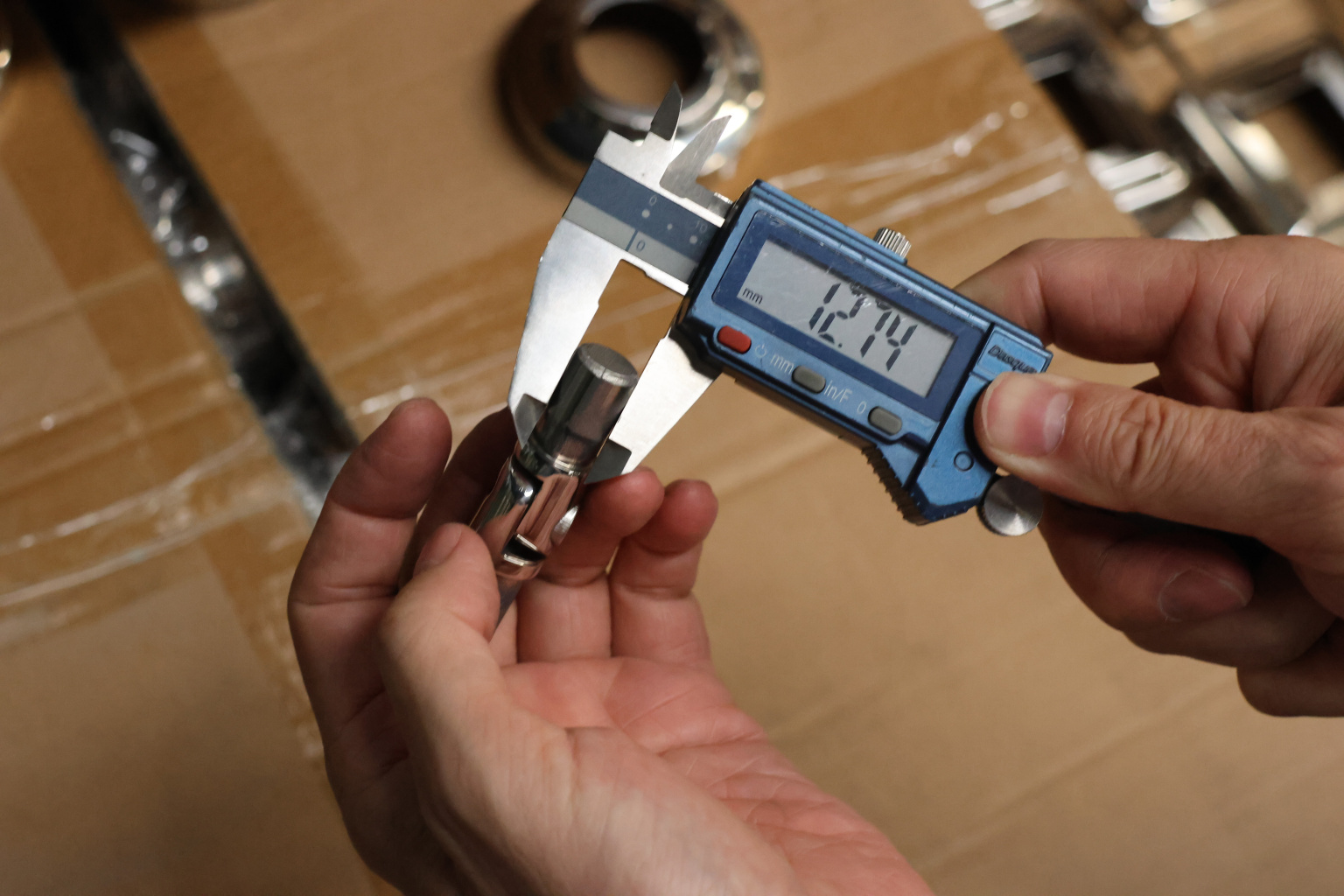 Поворот ригеля для трубы диаметром 16х1.5 мм, с двумя установочными штифтами. Деталь полированная, литая, шарнирная. Марка стали - AISI 304