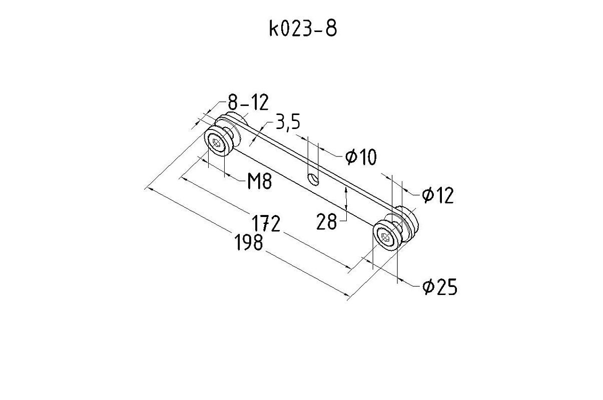 Стеклодержатель пластинчатый 3хМ8, по центрам 170х3,5 мм, полированный, шайбы 5 мм штамп., под стекло 6-12 мм, AISI 316 k023-8
