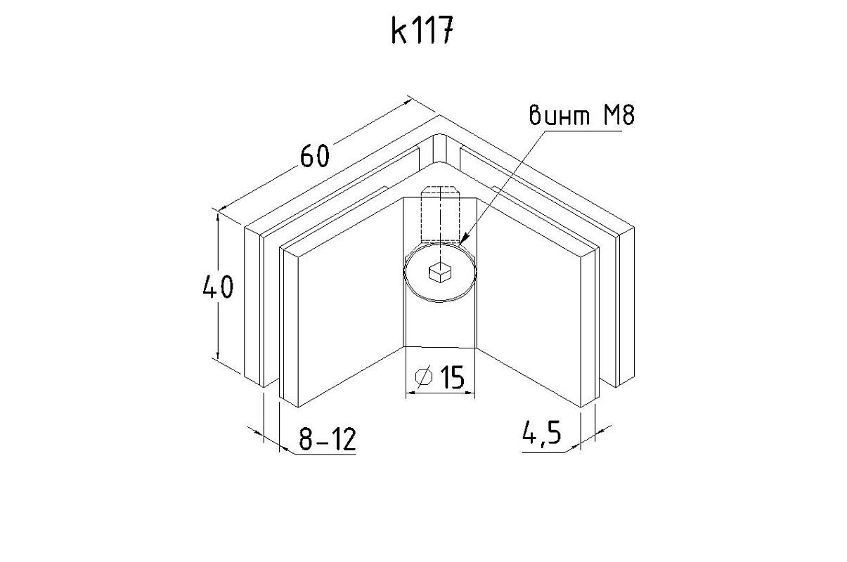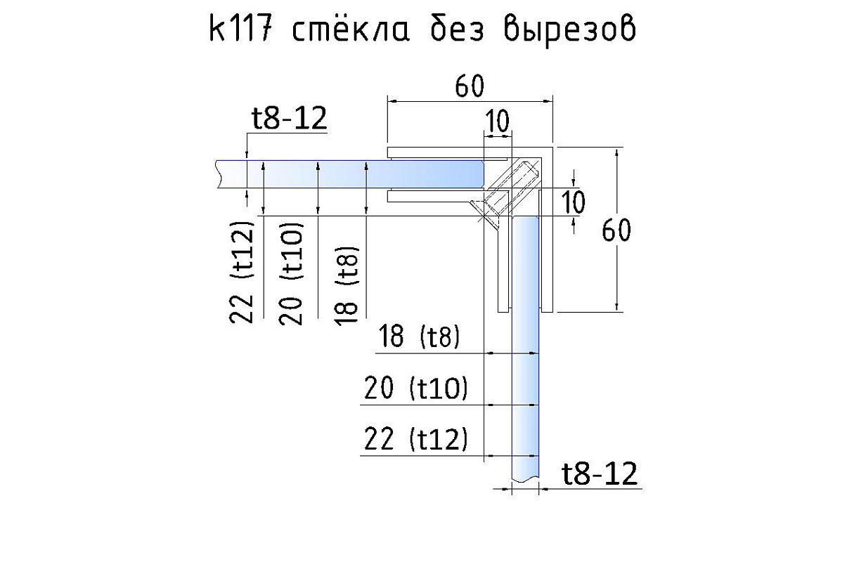 для соединения стекол между собой под углом 90 гр. в ограждениях, перегородках