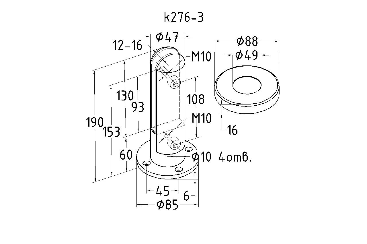 Стеклодержатель литой напольный, круглый Ø50х190 мм, шлифованный, AISI 304 k276-4 купить в Уфе