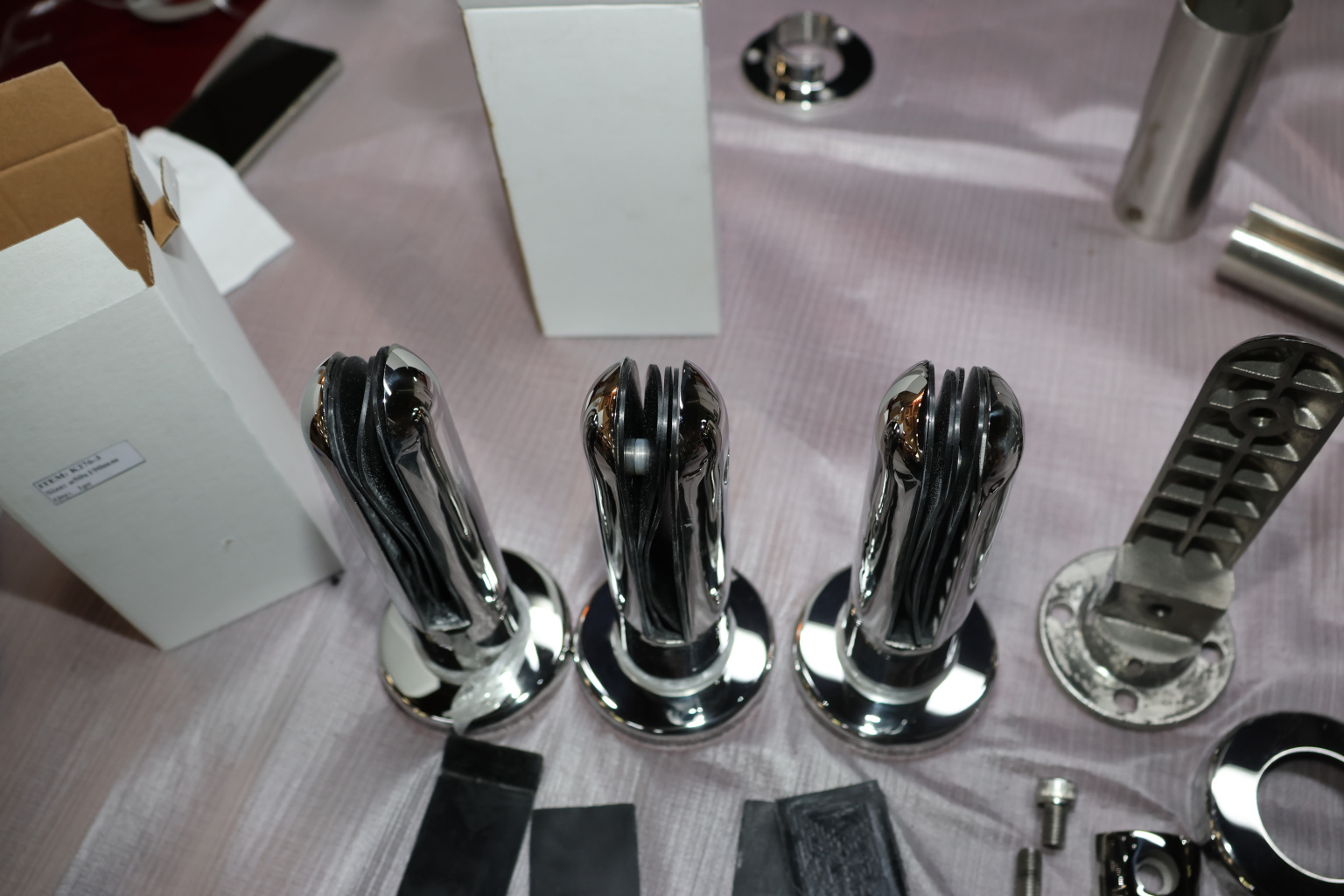 Стеклодержатель пластинчатый 3хМ8, по центрам 170х5 мм, полированный, шайбы 5 мм штамп., под стекло 6-12 мм, AISI 316 k023-8 купить в Уфе