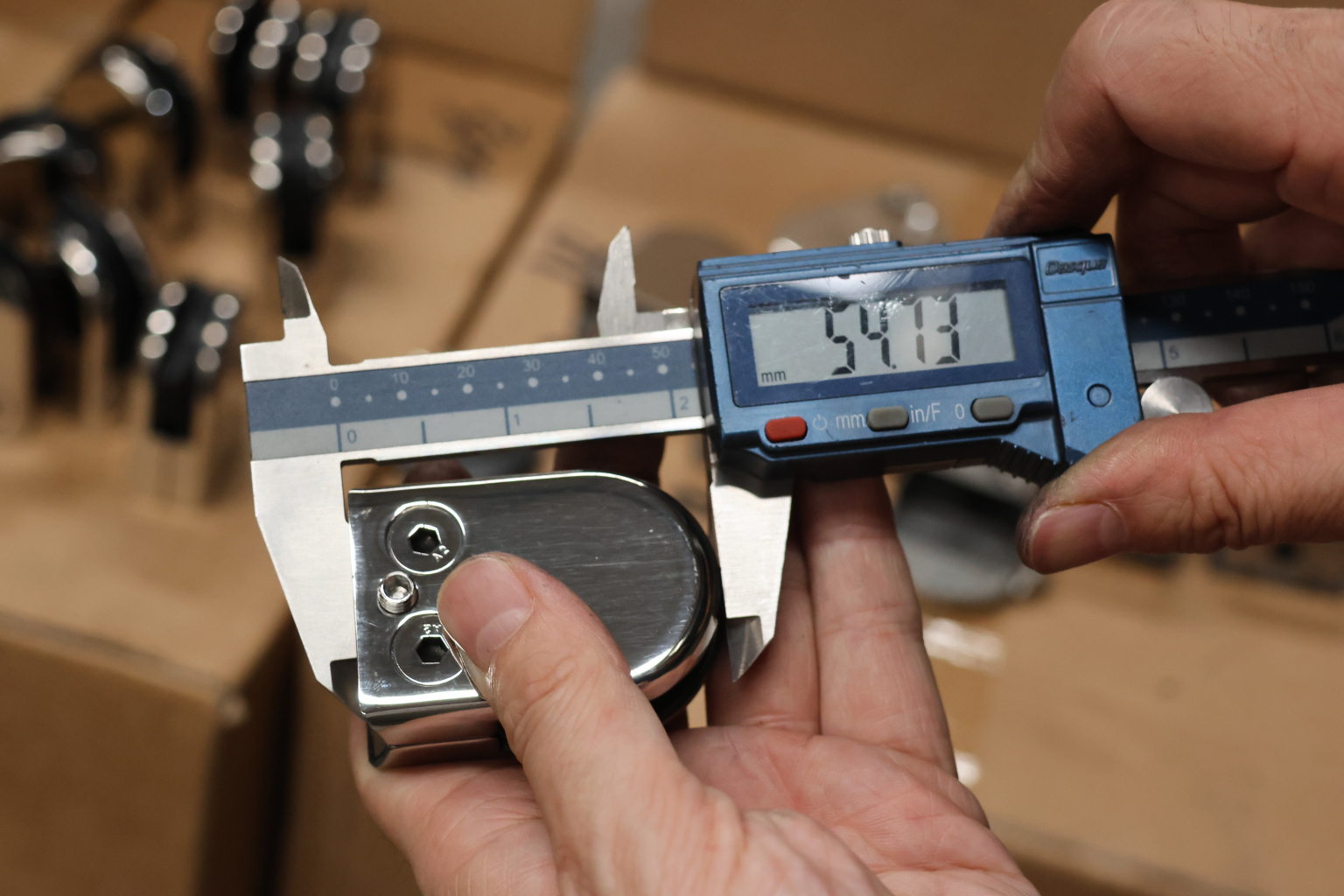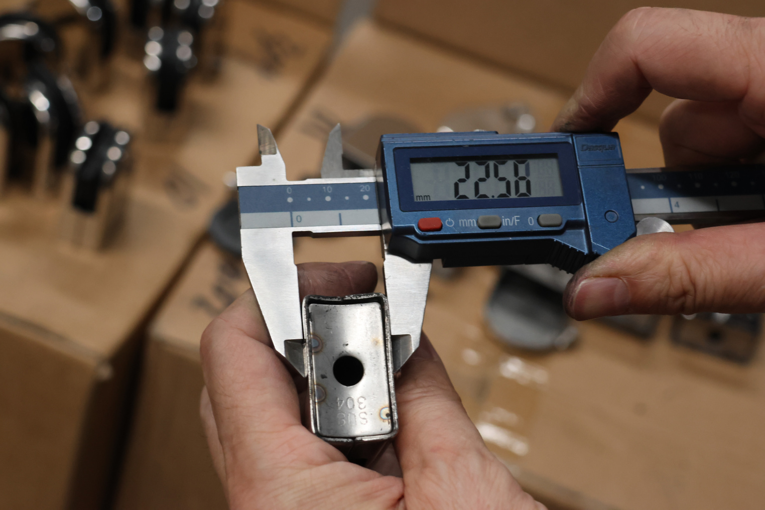 Стеклодержатель штампованный, под стекло 10 мм (5+5 мм), квадратный под стойку Ø38.1 мм (40х24х48 ) полированный AISI 304 k351-10