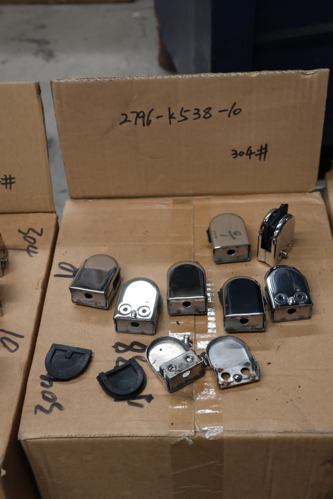 Стеклодержатель штампованный под стекло 10 мм (5+5 мм), под стойку Ø38.1 мм (39х24х55), полированный (AISI 304) k538-10