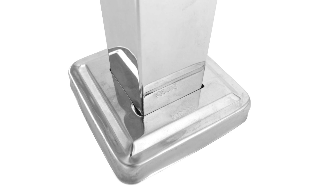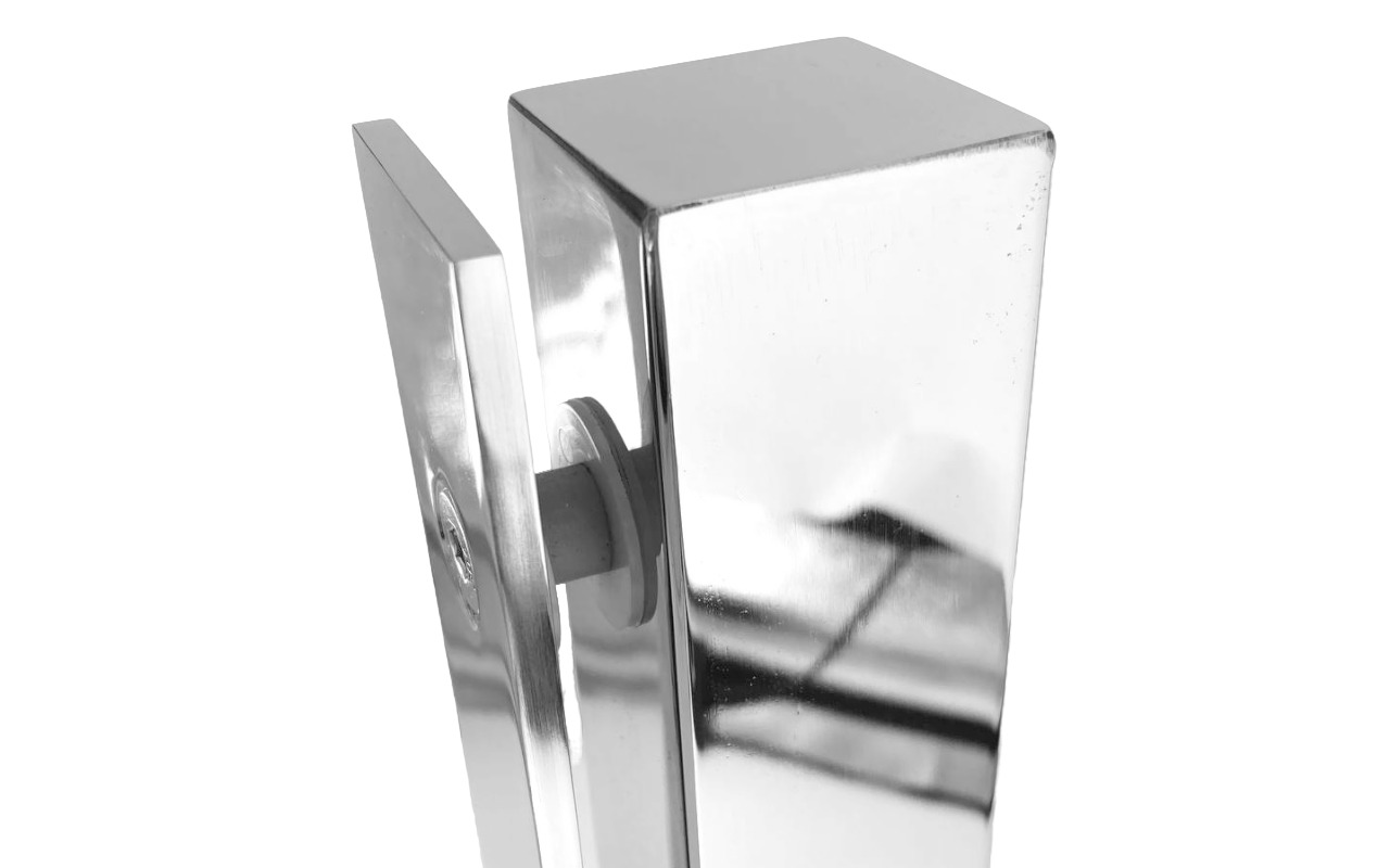 Стеклодержатель штампованный под стекло 8 мм (4+4 мм), квадратный, под стойку Ø38.1 мм (40х24х48), полированный (AISI 304) k351