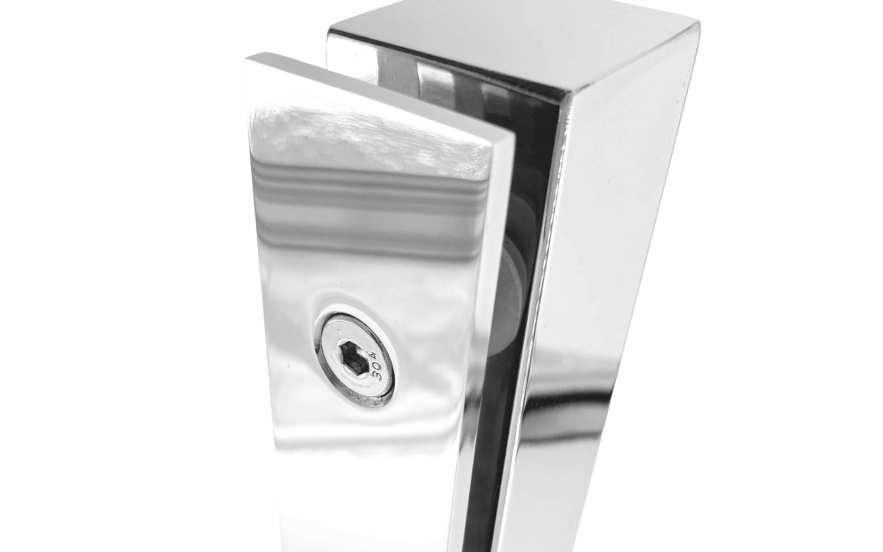 Стеклодержатель штампованный  под стекло 8 мм (4+4 мм), квадратный, под стойку Ø38.1 мм (40х24х48), полированный (AISI 304) k351 купить в Уфе