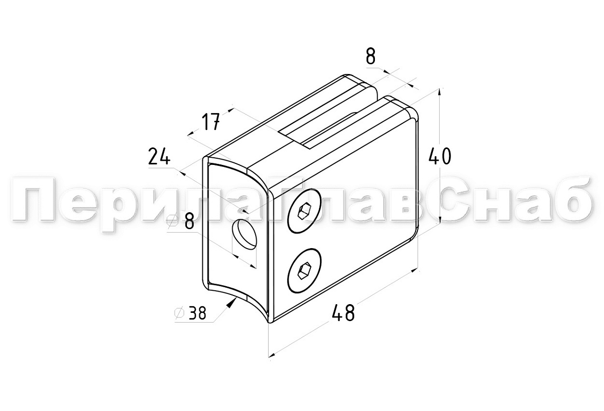Стеклодержатель штампованный под стекло 8 мм (4+4 мм), под стойку Ø38.1 мм 40х24х55, полированный (AISI 304) k038 купить в Уфе