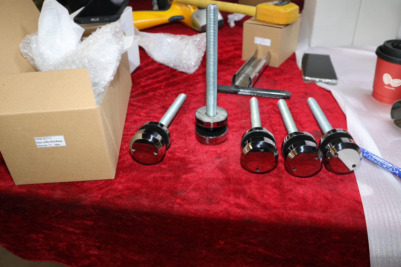 Комплект торцевого крепления несущего стекла, шпилька М16 AISI304, гайка-шайба Ø50х10мм, с регулировкой вылета 25-39мм, полированный, AISI 304 k277-11 купить в Уфе