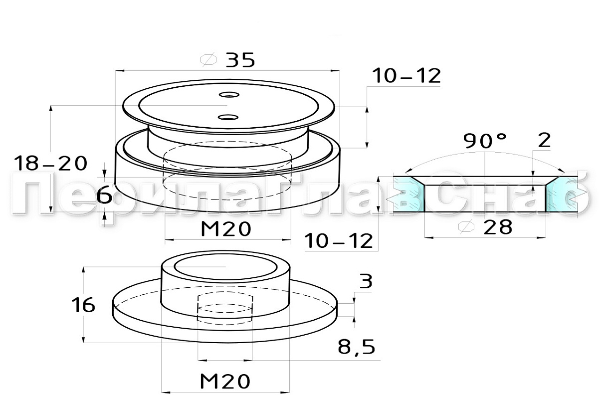 Точечное крепление регулируемое 10.5-12.5 мм, под зенковку, для стекла 10-12 мм, шлифованное