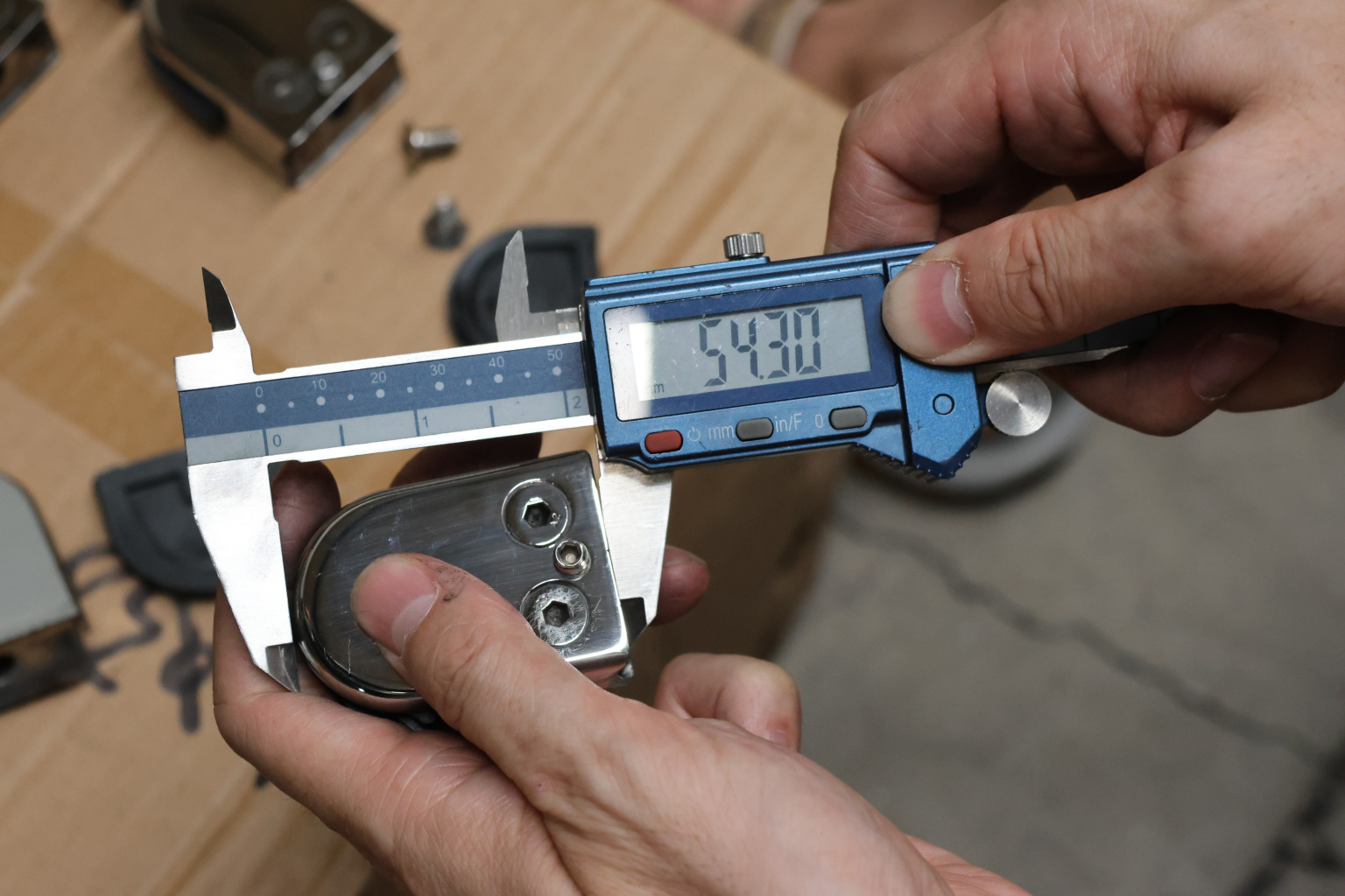 Стеклодержатель штампованный под стекло 8мм (4+4 мм), под стойку Ø38.1 мм 40х22х54, полированный (AISI 304) k538-2