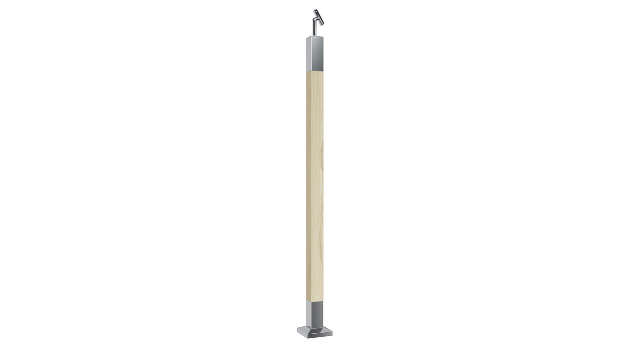 Стойка с деревянными вставками подойдет под любой дизайн благодаря тому, что Вы можете покрасить деревянную вставку в любой необходимый вам цвет. В стойке используется дубовая вставка и нержавеющая сталь AISI 304. Все элементы из нержавеющей стали приварены, заполированы и обработаны на нашем производстве. Благодаря регулируемому наконечнику стойки можно использовать как на лестничном марше, так и на прямом участке.