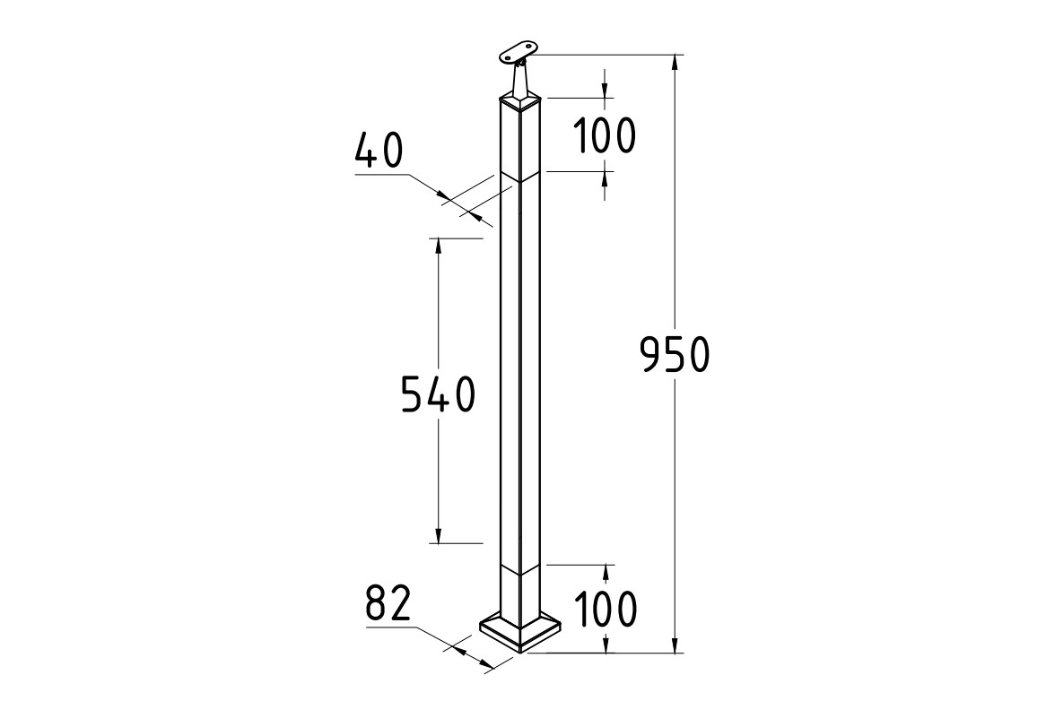 Готовая стойка 40х40х950 мм, деревянная нелакированная, дуб, с лежементом под плоскость, со вставками из нержавеющей стали 2х100 мм k740-12