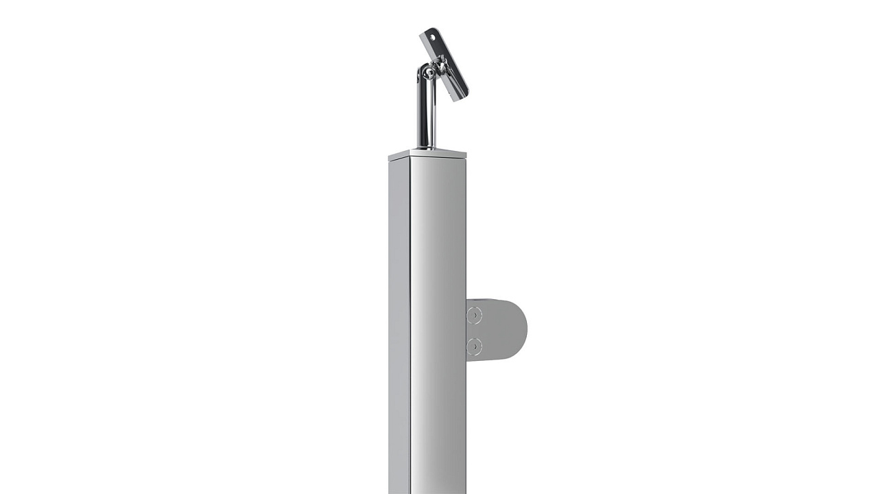 Стойка квадратная 40х40: 2 литых зажимных стеклодержателя, полированная, высота 950 мм (AISI 304) k745-R