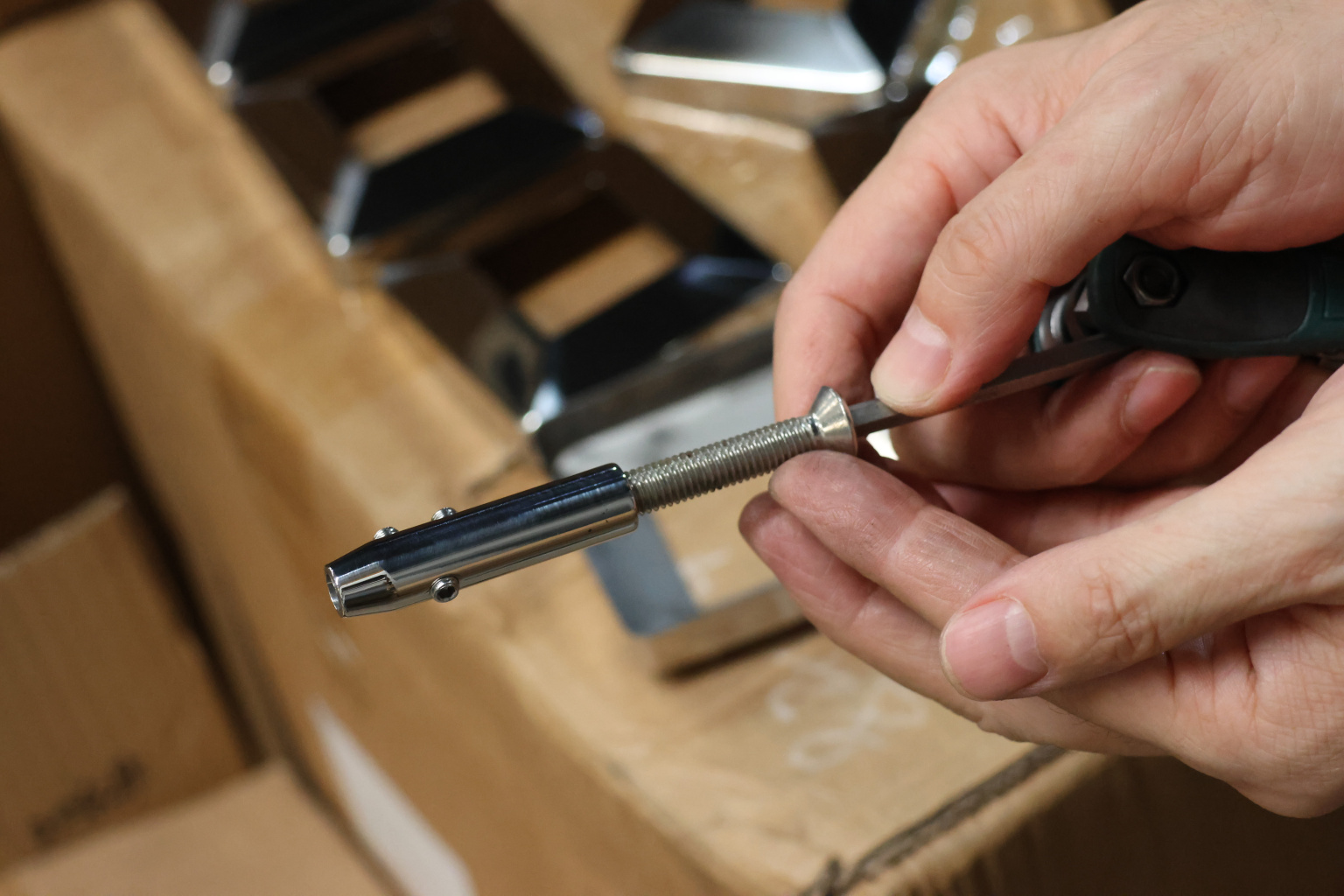 Держатель служит для натяжения тросика между стойками, как правило, на ограждении их всего требуется по два на каждый трос.