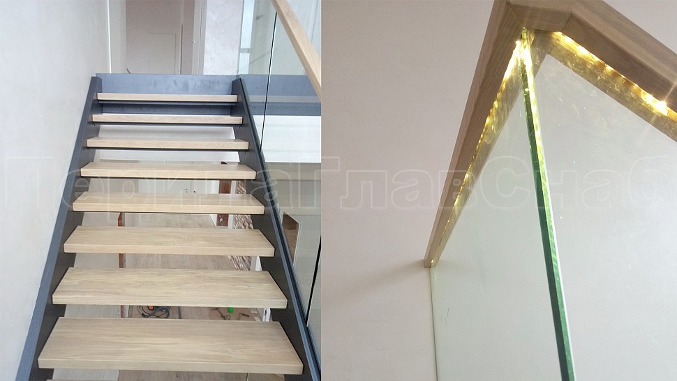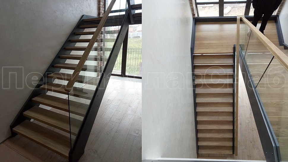 Крайне удачным является решение установить именно стеклянные ограждения на данном объекте: как стекло, так и стальной поручень отлично гармонируют на фоне кирпичной стены шоколадного и соломенного цветов