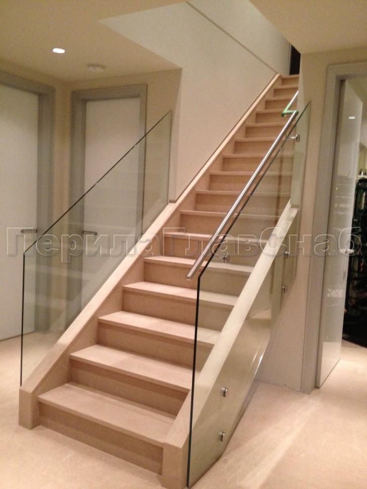 • Самый интересный вариант - установка защитного профиля на кромку стекла и специального выносного поручня.
