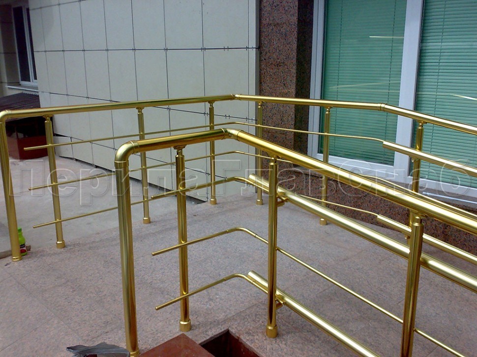 - Лестничное ограждение с тремя ригелями и поручнем из латуни